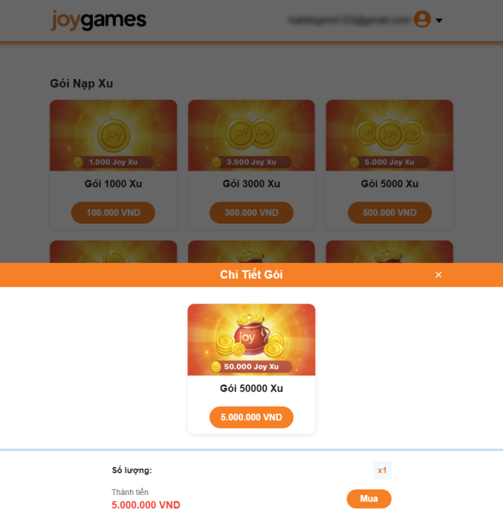 - Có nhiều gói Joy Xu để Thuyền Trưởng lựa chọn, từ 1.000 Joy Xu cho đến 500.000 Joy Xu. Sau khi chọn xong bấm vào nút [Mua]