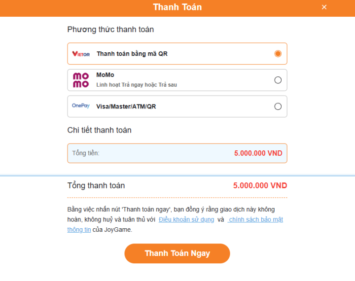 - Thanh toán vào game bằng Joy Xu sẽ nhận được giá rẻ và nhiều ưu đãi hấp dẫn