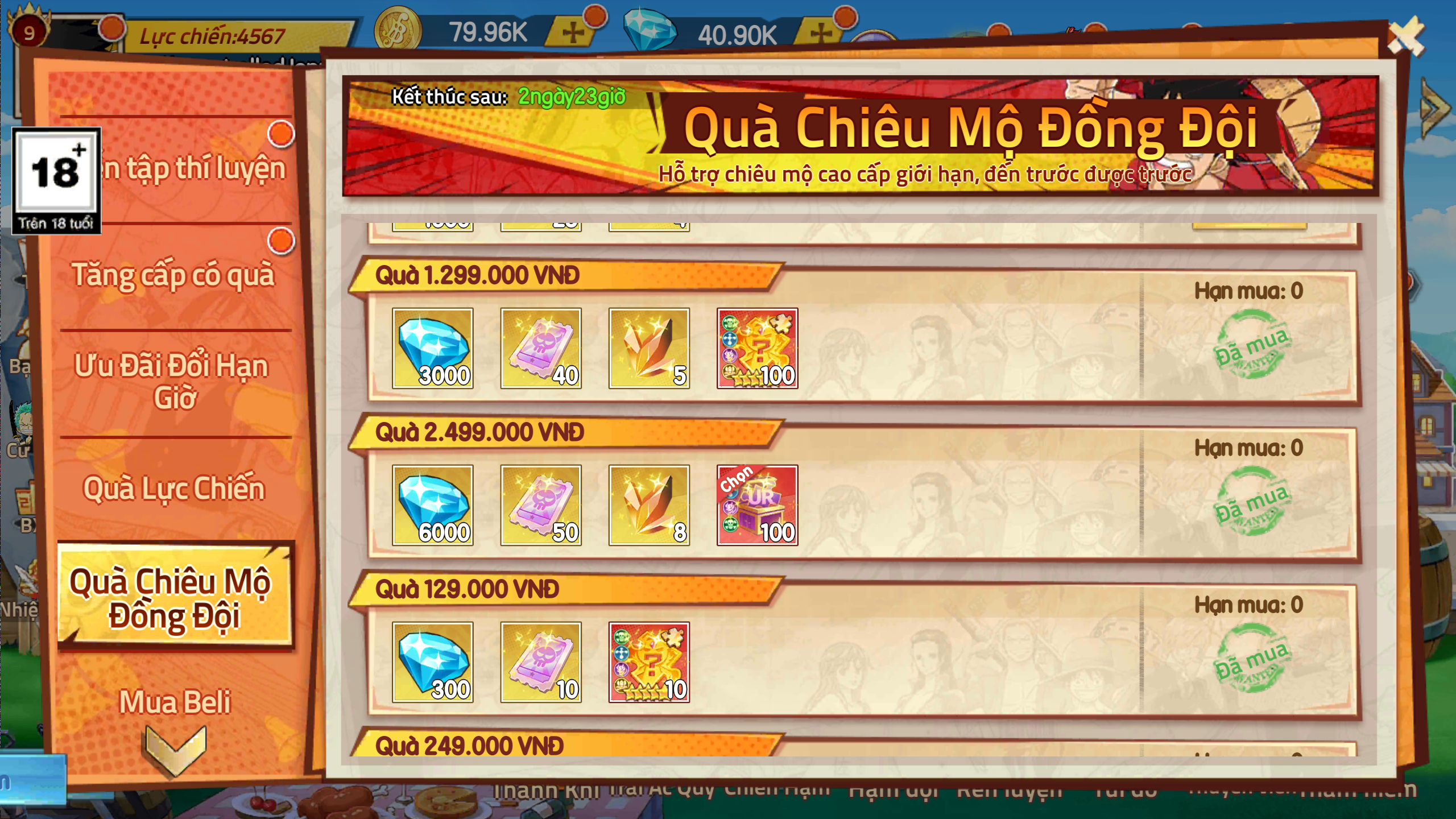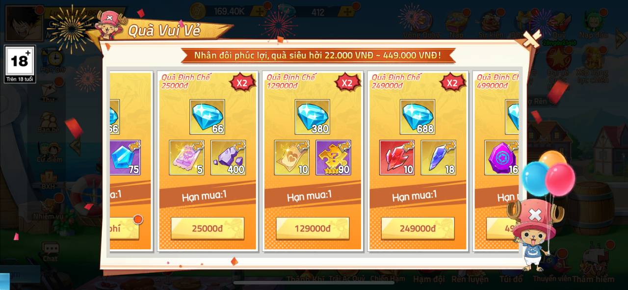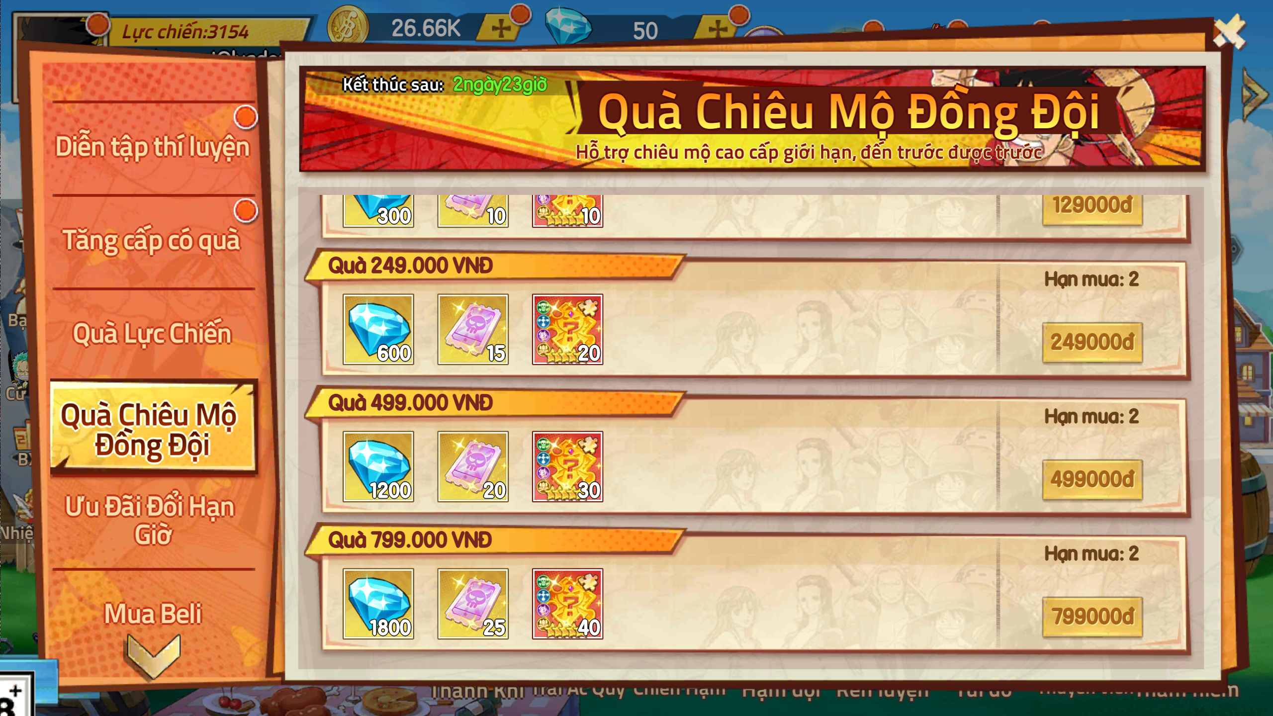 - Nhân đôi quà nhận ở các gói mua: 25K, 129K, 249K và 499K