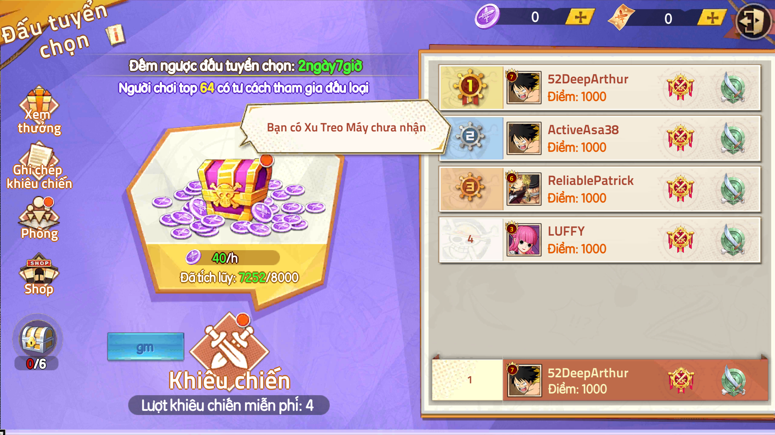 4. Mỗi ngày người chơi được khiêu chiến miễn phí 4 lần, mỗi ngày có thể dùng kim cương mua 20 Thẻ Khiêu Chiến đấu tuyển chọn