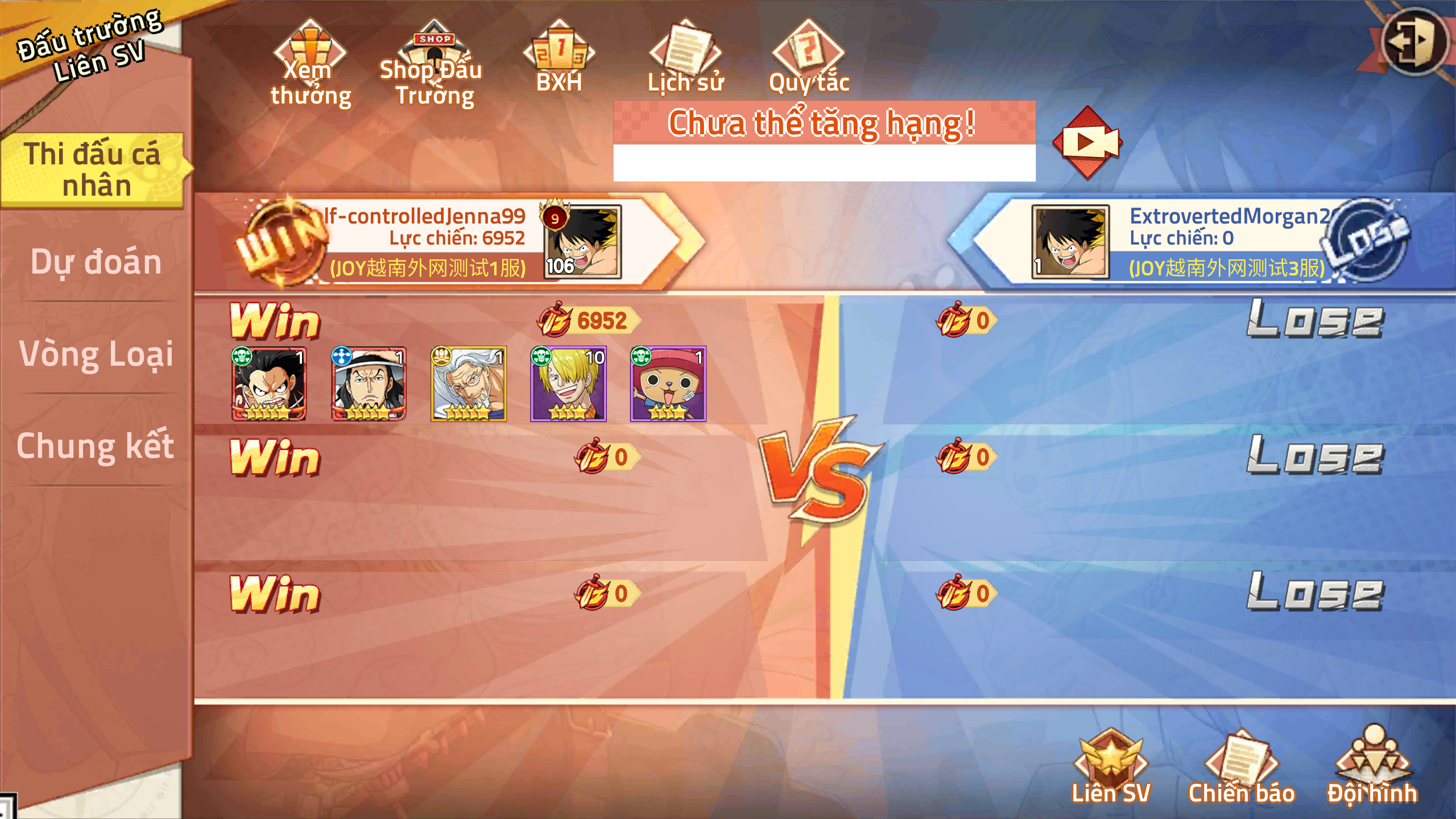 3. Hình thức thi đấu là đối kháng đội hình 3 nhóm 5v5, số lượt chiến đấu tối đa 15, nếu chiến đấu quá giờ, bên tổng sát thương cao sẽ thắng.